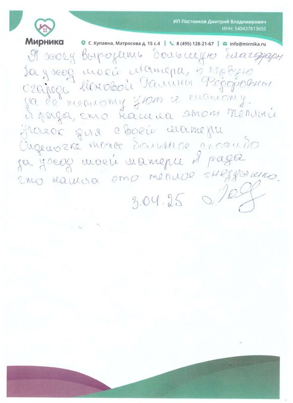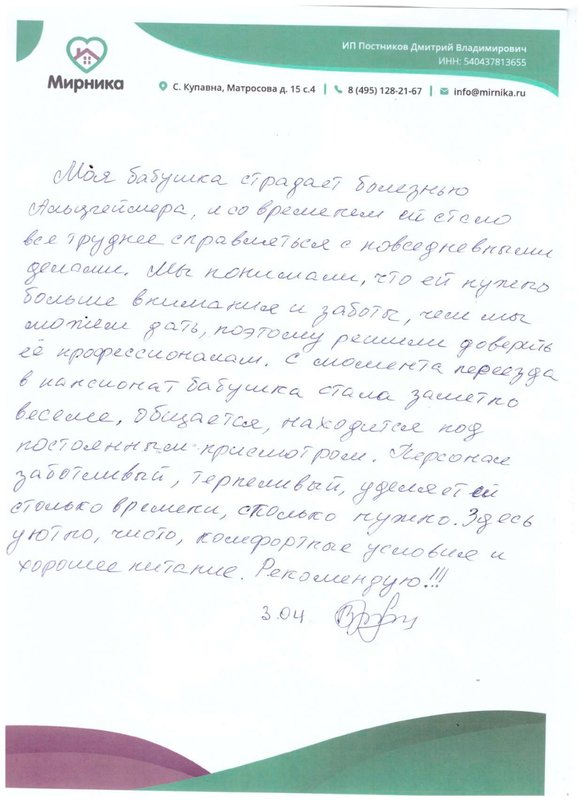Пансионат для пожилых людей Мирника в Старой Купавне